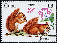 ハンガリー発行(1976) ずいぶんもこもこしてまるまっちいリスですね。 タイワンリスっぽい。 小さく名前らしきものが書いてあるんだけど…ハンガリー語が読めればなぁ。