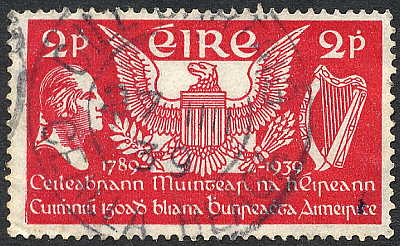 上の切手と同じシリーズでしょう。 ハープにシャムロックが絡んでいるデザインで、とても綺麗です。 色がパステルグリーンなのもいい。